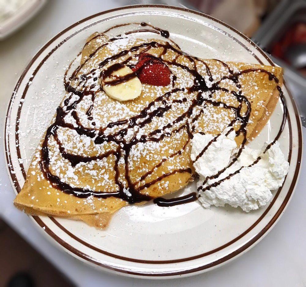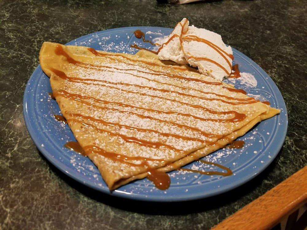 I had the St Louis crepe. My husband had the right words It's feakin' delicious. Portions are big, I had to take some home. Trying a dessert crepe next time. People are nice and friendly. Prices are reasonable. Check it out if you're in Moreno Valley. They're in Canyon Springs shopping center.